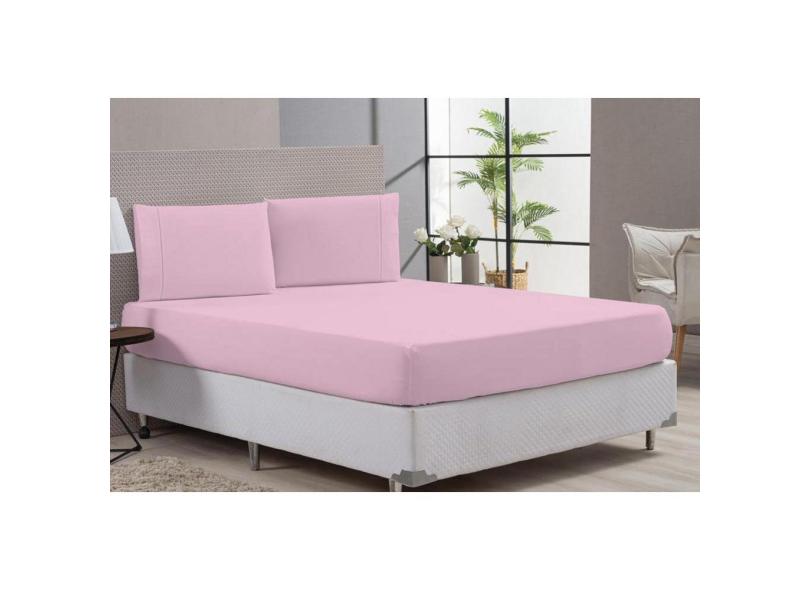 Lençol Casal King Algodão 3 Peças Rosa Hotel Hospedaria