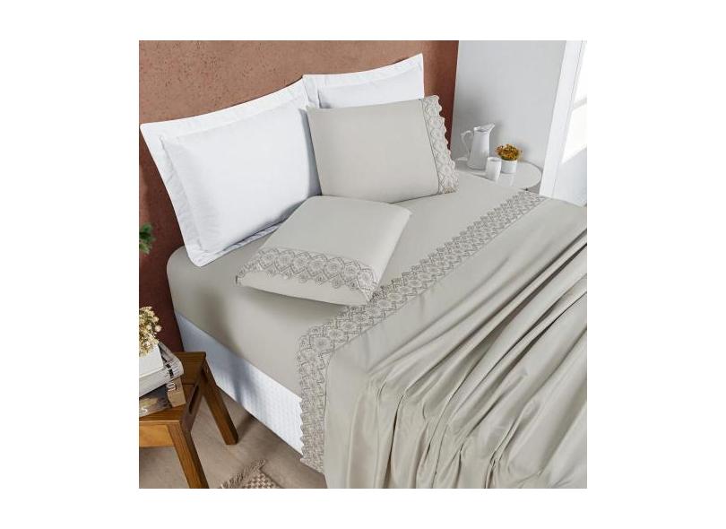 Lençol Casal King Size London Bordado Inglês 200 Fios 04 Pçs Caqui - J