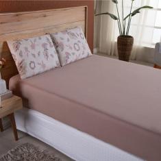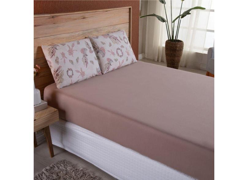 Lençol Casal Malha Fio Penteado Algodão 3 Peças - Cáqui