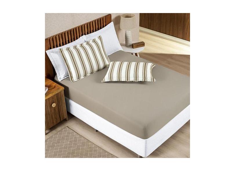 Lençol Casal Malha Listrado 3 Peças - Cáqui - Casa Scarpa
