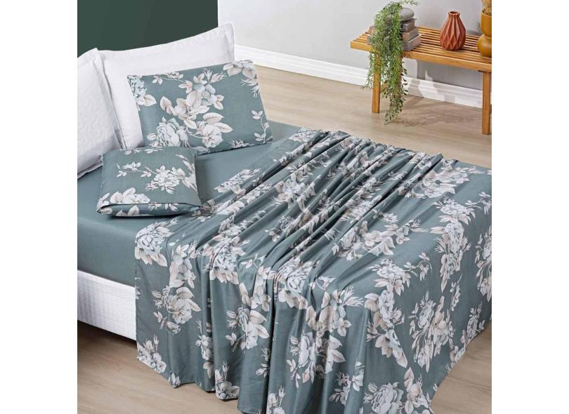 Lençol Casal Micropercal 200 Fios - Verde Floral