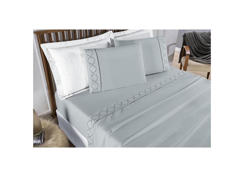 Lençol Casal Super King Madri 300 Fios 04 Peças Cinza