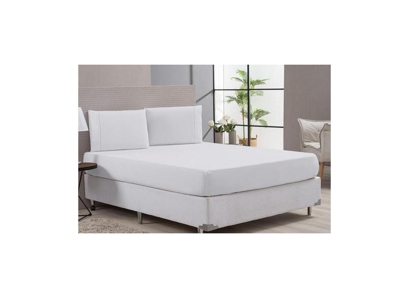Lençol Com Elástico Casal 3 Peças 80% Algodão Branco - Beatriz Emxovai