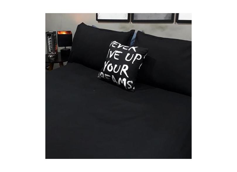 Lençol Com Elástico Casal Comum 4 Un Preto Almofada Decor - Casa Da Fa