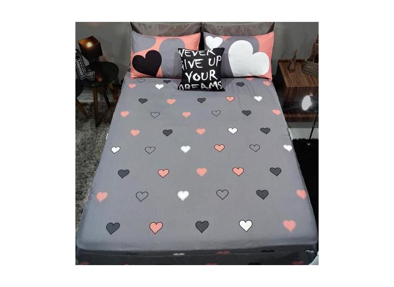 Lençol Com Elástico Casal King 4 Un Love Com Almofada Decor - Casa Da