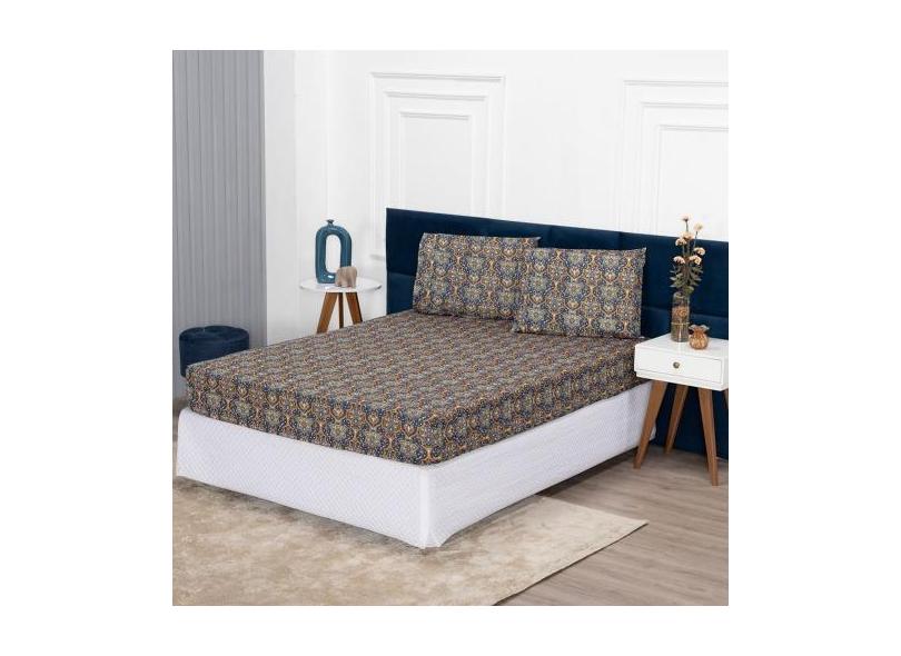 Lençol Com Elástico Casal Padrão Malha Gel Estampada Resistente Prátic