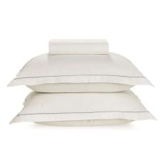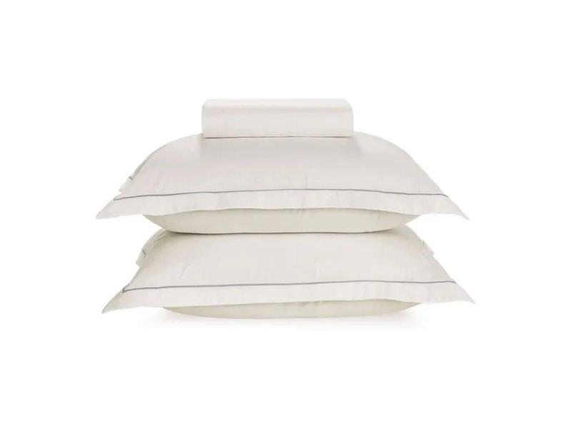 Lençol com Elástico Queen friso cinza Karsten 180 Fios Percal 100% Algodão com Fronha Royal Branco