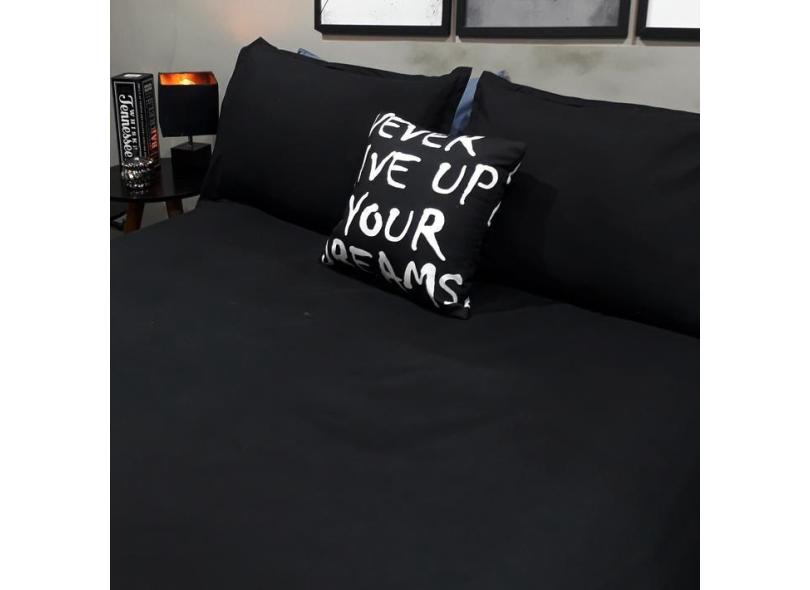Lençol Com Elástico Solteiro King 4 Un Preto Almofada Decor