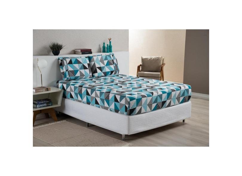 Lençol Com Fronhas Ponto Palito Casal Cama Box 3 Peças Geo
