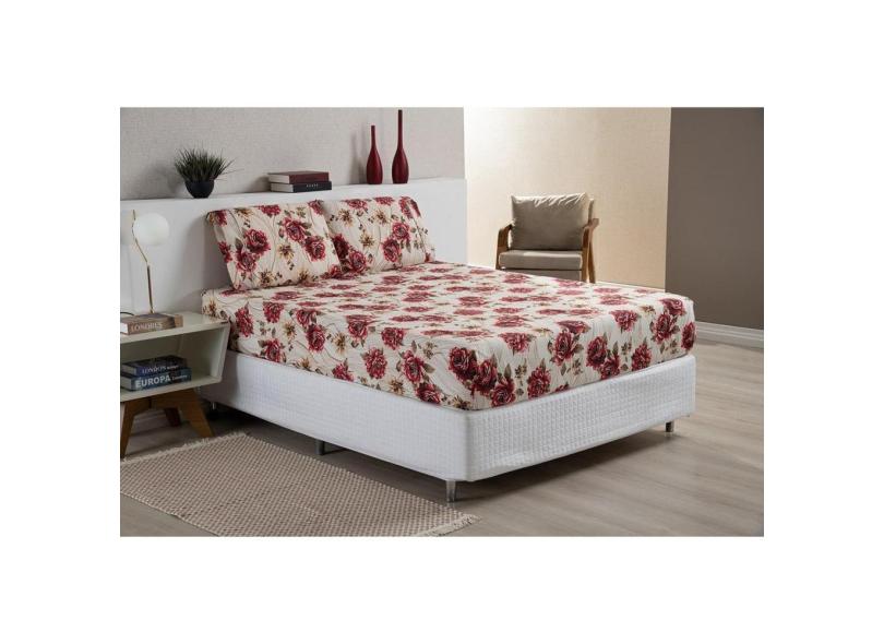 Lençol Com Fronhas Ponto Palito Casal Cama Box 3 Peças Rosas