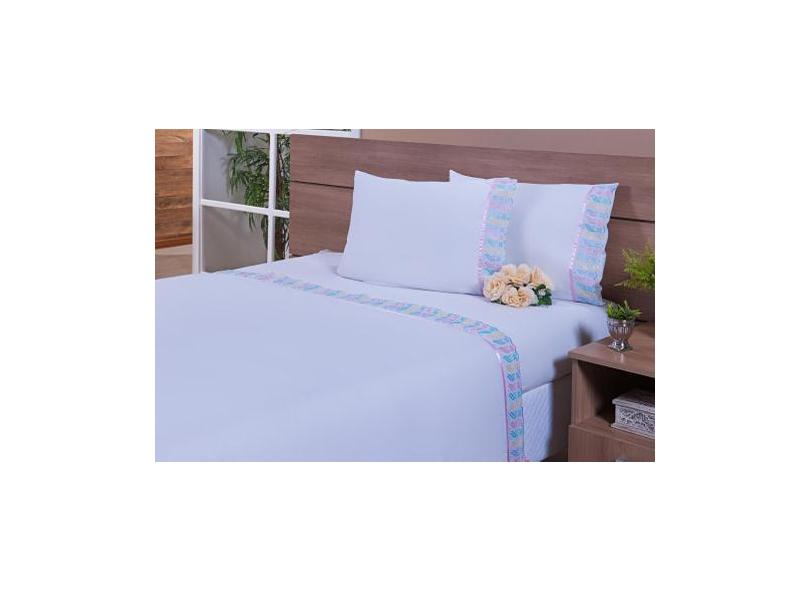 Lençol D Viuva Com Leze Colorido Fita Rose 4peças 100% Algodão 200fios