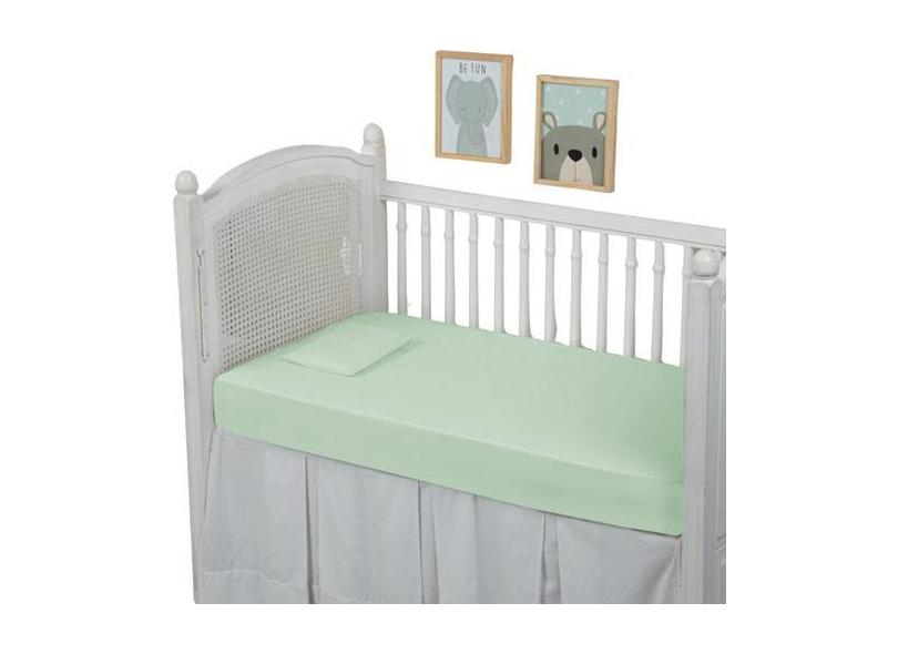 Lençol de Berço 2 Peças Percal 300 Fios com Elástico e Fronhas 100% Al