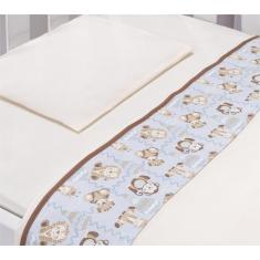 Lençol De Berço Para Bebe Menino Azul 3 Peças Algodão Safari Animais