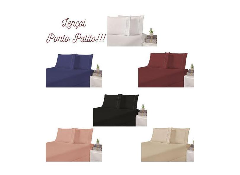 Lençol De Casal Queen 3Pçs Ponto Palito Percal 200 Fios - Bordados Qic