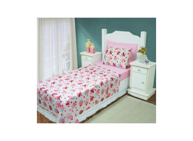 Lençol Infantil De Menina Jogo De Cama Solteiro 3Pçs Cupcake - Aquarel