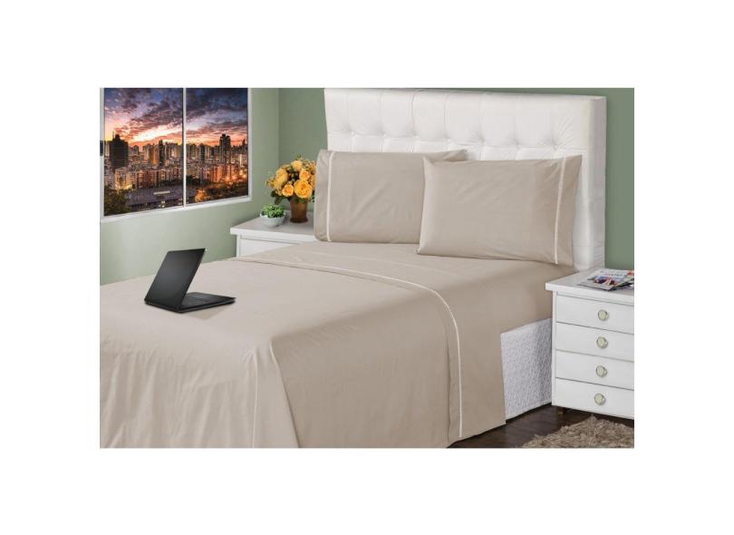 Lençol King 4 Peças Marfim 400 Fios Toque Macio Ponto Palito Casa Dona
