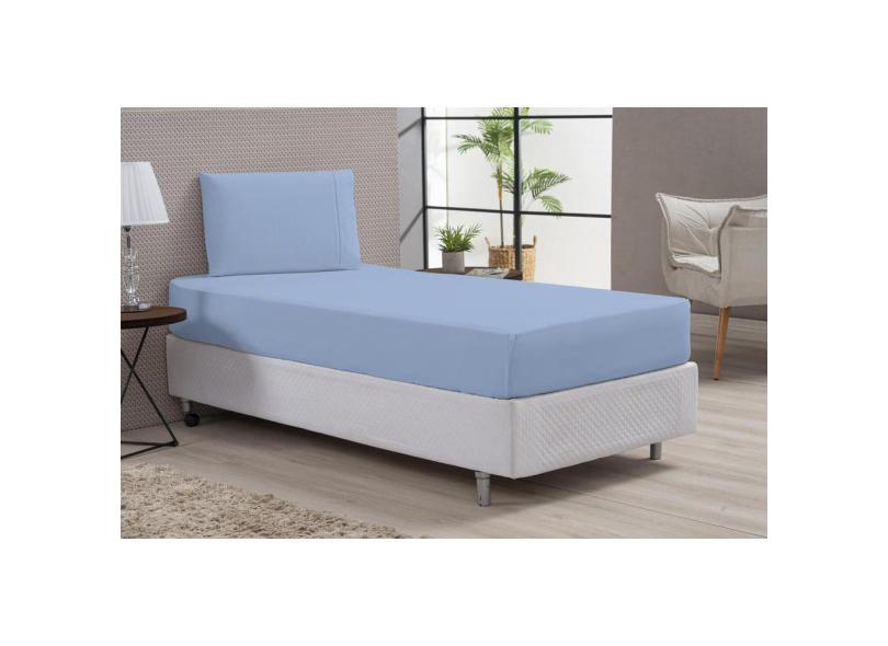 Lençol Macio Elástico e Fronha 80% Algodão Solteiro Azul