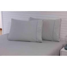 Lençol Queen 3 Peças C/Elástico Percal 100% Algodão 200 Fios Cinza