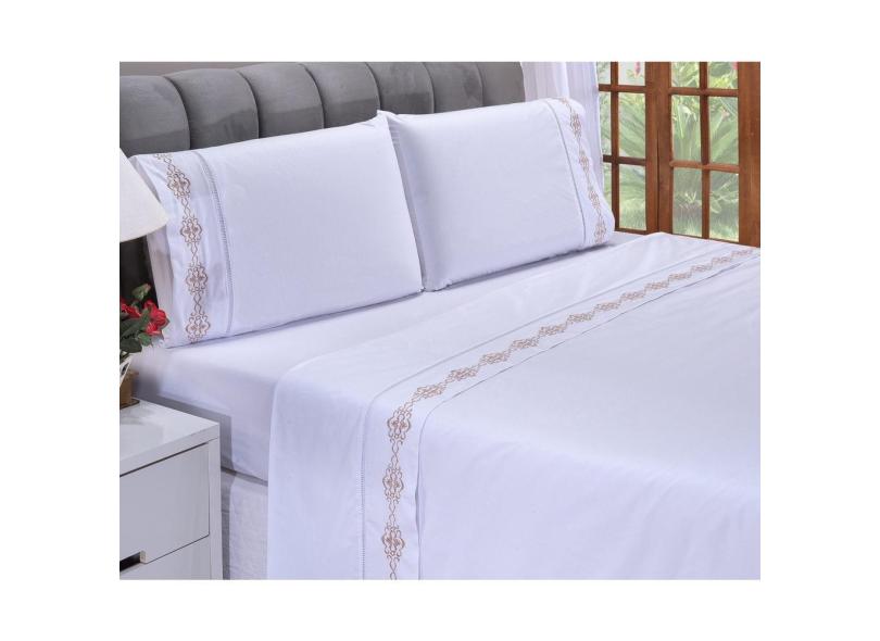 O menor preço encontrado no Brasil para Lençol Queen Casal Bordado Diamante Branco e Caki 4 pçs atualmente é R$ 216,11.