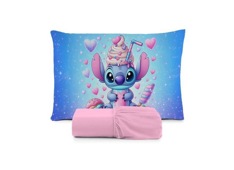 Lençol solteiro 2 pçs fronha estampada - Amora enxovais, stitch sorvet