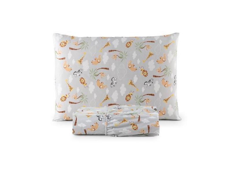 Lençol Solteiro 2 Peças Estampado Safari 100% Algodão Infantil Macio e