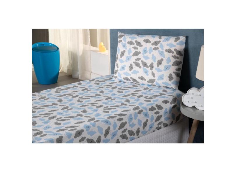 O menor preço encontrado no Brasil para Lençol Solteiro Nuvem Azul 180 Fios - Aventura e Conforto atualmente é R$ 79,53.