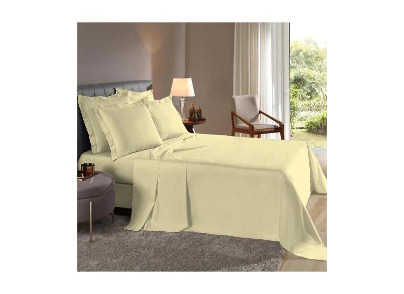 Lençol Super King 4 Peças 200 Fios 100% Algodão - Amarelo - Dryka Enxo