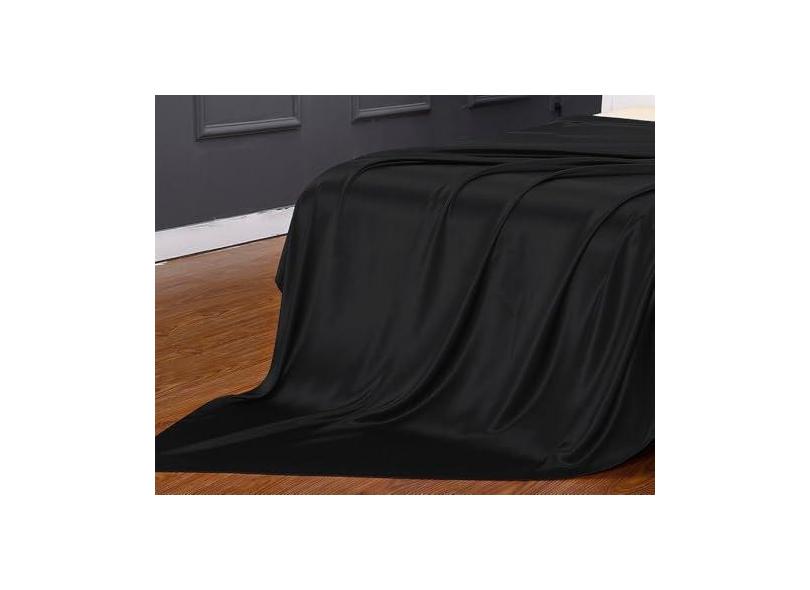Lençol Superior Avulso Casal Padrão Cetim Seda Preto Brilho