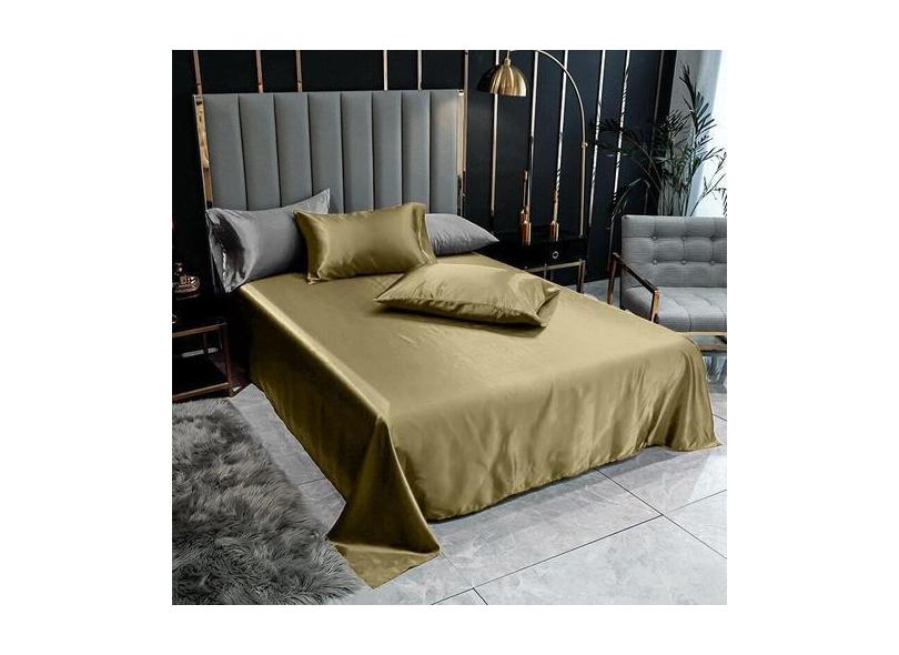 Lençol Superior Casal King Com 2 Fronhas Cetim Seda Cobre - Confecções