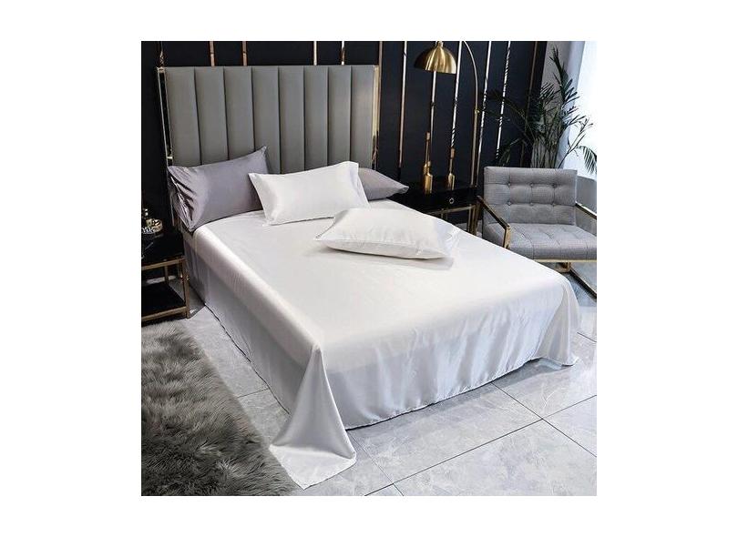 Lençol Superior Casal Padrão Com 2 Fronhas Cetim Seda Branco - Confecç