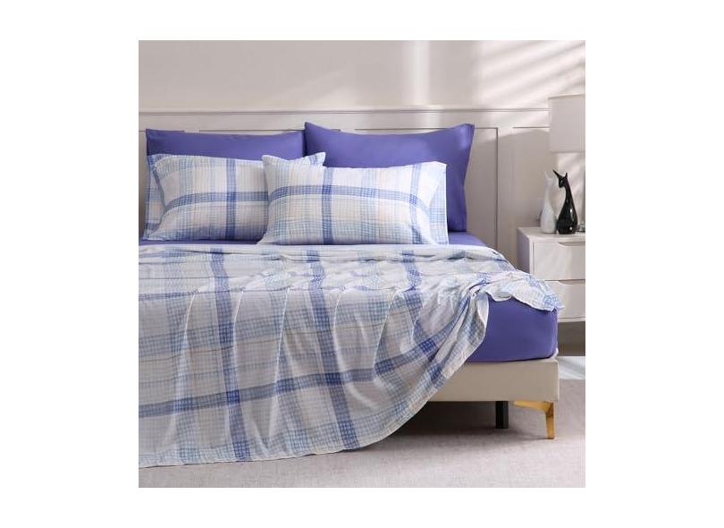 LONAVA Jogo de lençol liso e estampado - 6 peças, inclui lençol de elástico sólido, fronhas sólidas, certificado OEKOTEX, 100% microfibra escovada, confortável e respirável, G24064