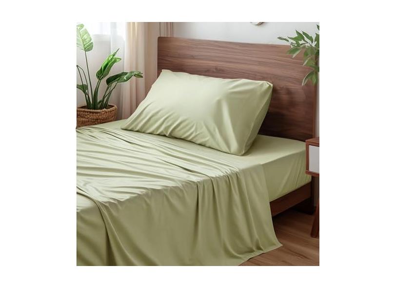 Lyralith Viscose derivada de bambu, roupa de cama macia refrescante com acabamento suave e sedoso, bolso profundo de 40,6 cm, hipoalergênico, respirável, conjunto de lençóis de cama solteiro de hotel