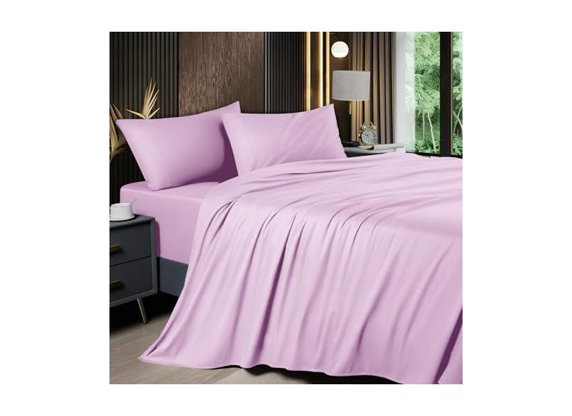 Shilucheng Jogo de lençol King de 4 peças, lençóis refrescantes, rayon misto derivado de bambu, bolso profundo de até 40,6 cm, lençóis de cama respiráveis e macios, conjunto de cama sedoso de hotel,