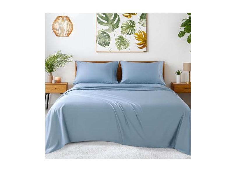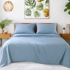 SONORO KATE Lençóis 100% algodão egípcio - 1200 fios, conjunto de lençóis de algodão luxuoso e refrescante para hotel de 4 peças, trama de cetim para sensação macia, cabe em colchões de até 40,6 cm