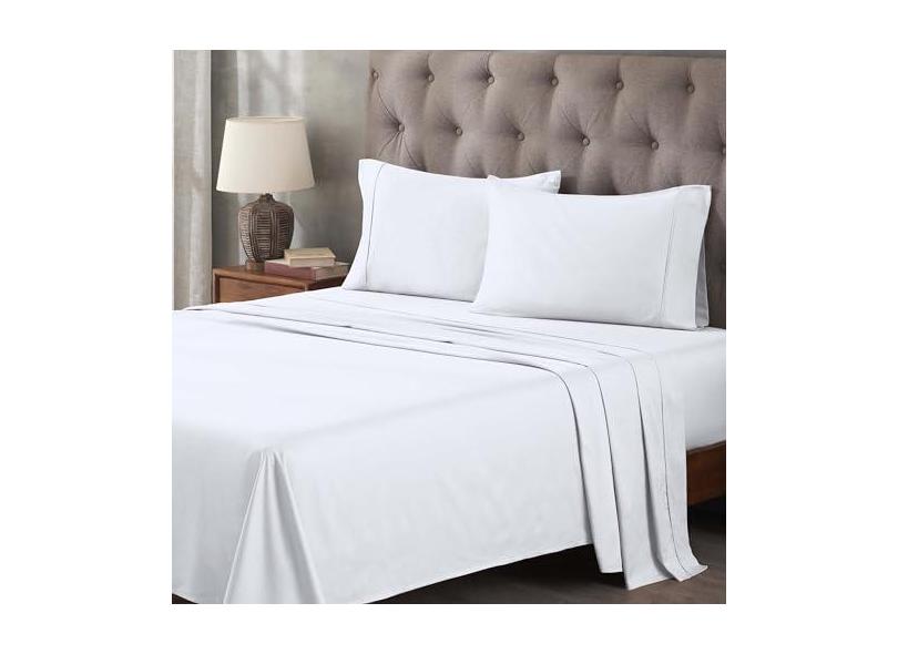 Superior Jogo de lençol de algodão egípcio de 400 fios, lençóis de quarto, itens básicos de casa moderna, 2 lençóis de cama com elástico alto, 1 lençol de cima, 2 fronhas, King dividido, branco