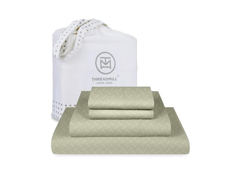 Threadmill Jogo de lençol Queen de algodão | 100% algodão para cama queen size | Jogo de cama queen damasco jacquard com bolso profundo de 40,6 cm | Conjunto de cama refrescante de 4 peças de cetim