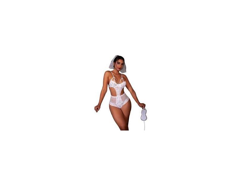 Fantasia Noiva Rebeca Body Renda Sensual Lingerie Erotica Sexy