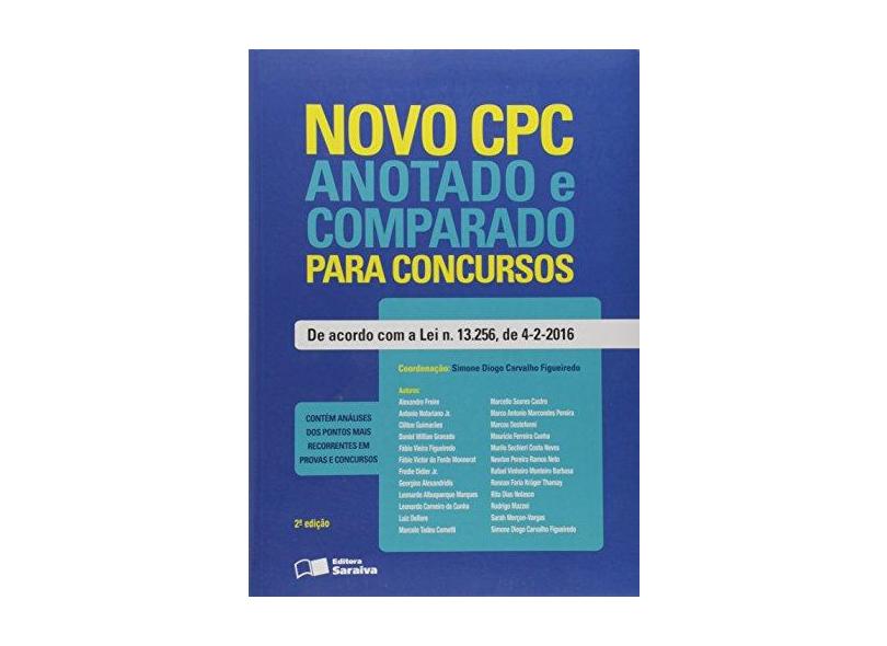 | Título | Novo CPC - Anotado e Comparado Para Concursos - de Acordo Com A Lei n. 13.256 - 2ª Ed. 2016 |