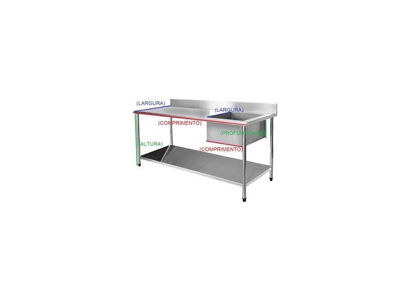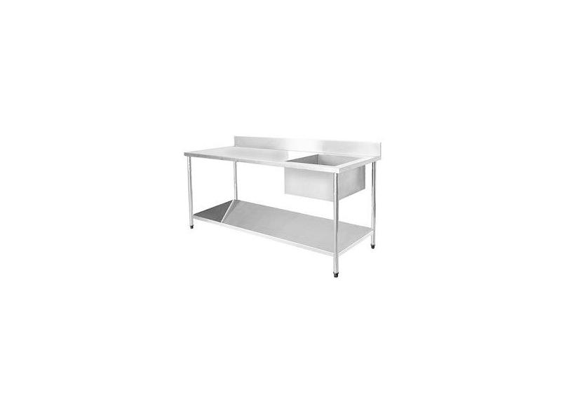Bancada / Mesa Pia Em Aço Inox com Uma Cuba (56x34x14) A Direita E Prateleira (120x70x85)