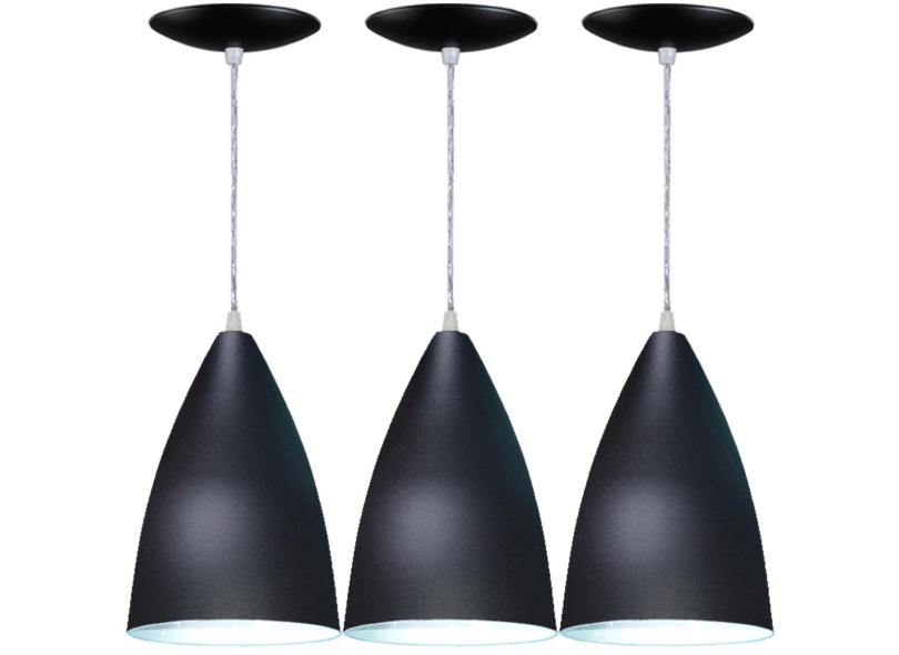 Kit 03 Arandelas Pendente Bala Em Alumínio - Cor Fosca