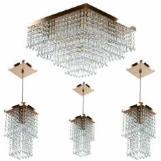 Kit 1 Lustre Cristal Acr Dream + 3 Pendentes Spark Cobre