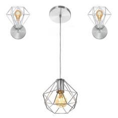 Kit 1 Pendente Aramado + 2 Arandela Diamante Aramado Cromado