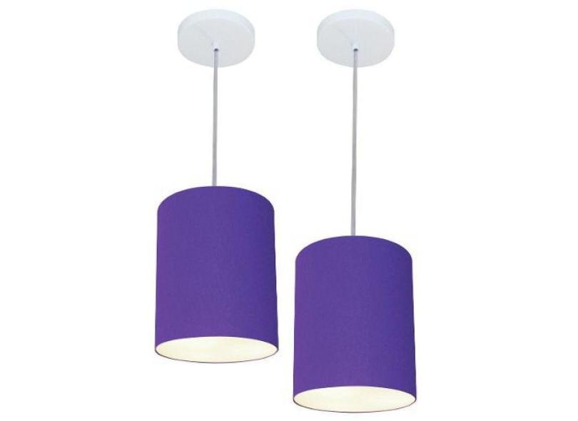 Kit 2 Lustre Pendente Cilíndrico 18X25cm Roxo Bivolt