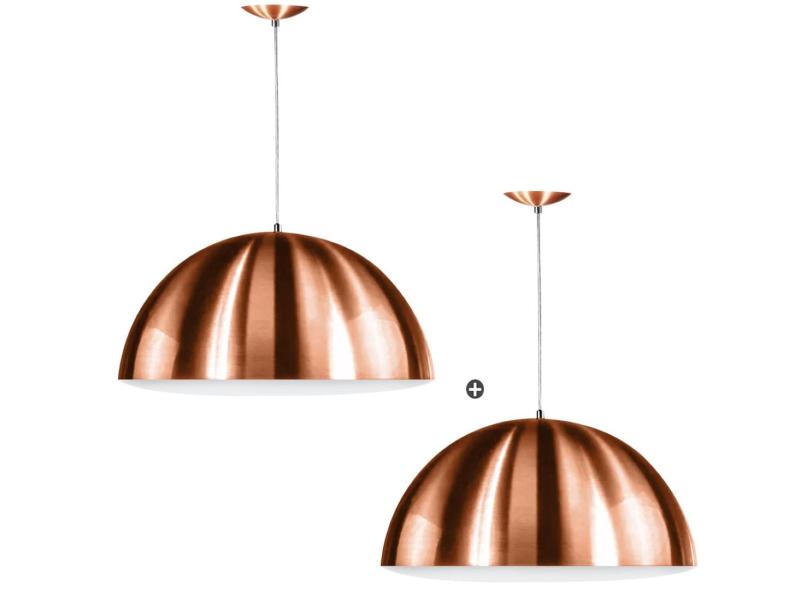 O menor preço encontrado no Brasil para Kit 2 Lustre Pendente Meia Lua 30Cm De Alumínio New Cobre atualmente é R$ 150,39.