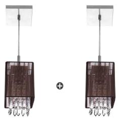 Kit 2 Lustres Pendente Cupula Quadrada Cganza Cristal Acrílic Marrom
