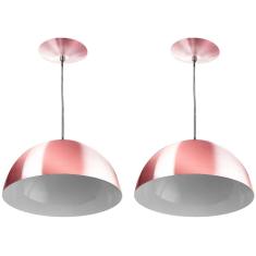 O menor preço encontrado no Brasil para Kit 2 Lustres Pendente Meia Lua 40cm Alumínio Gold Rose atualmente é R$ 201,52.