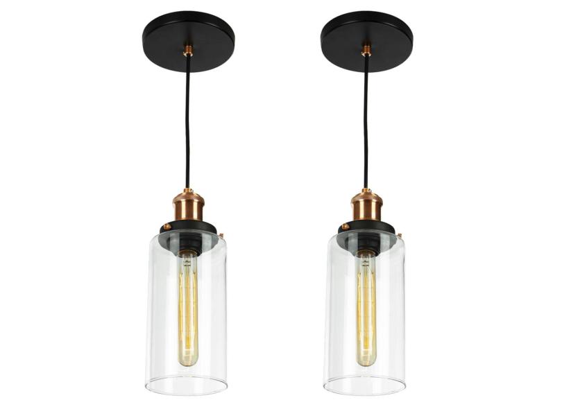 Kit 2 Lustres Pendentes Château Cilindrico Vidro Cobre