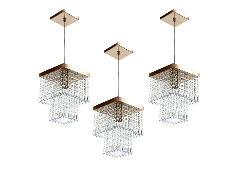 O menor preço encontrado no Brasil para Kit 3 Lustre Pendente De Cristal Acrílico Marrycriic Cobre atualmente é R$ 391,40.