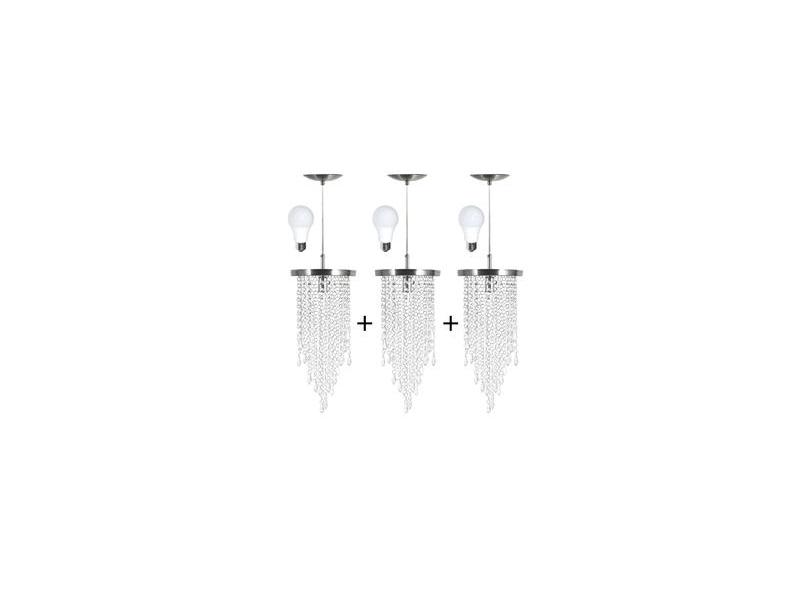 Kit 3 Lustre Redondo Crilik Ls7301 Cromado + Lâmpadas