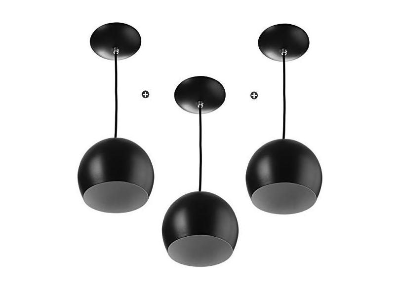 Kit 3 Lustres Pendente Bola Media De Alumínio 23cm Soquete E-27 Escovado